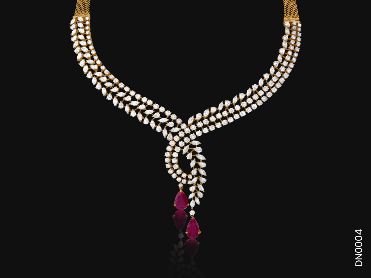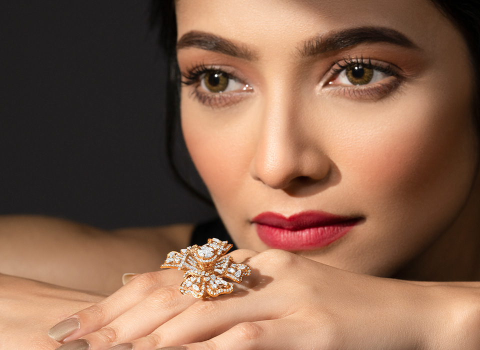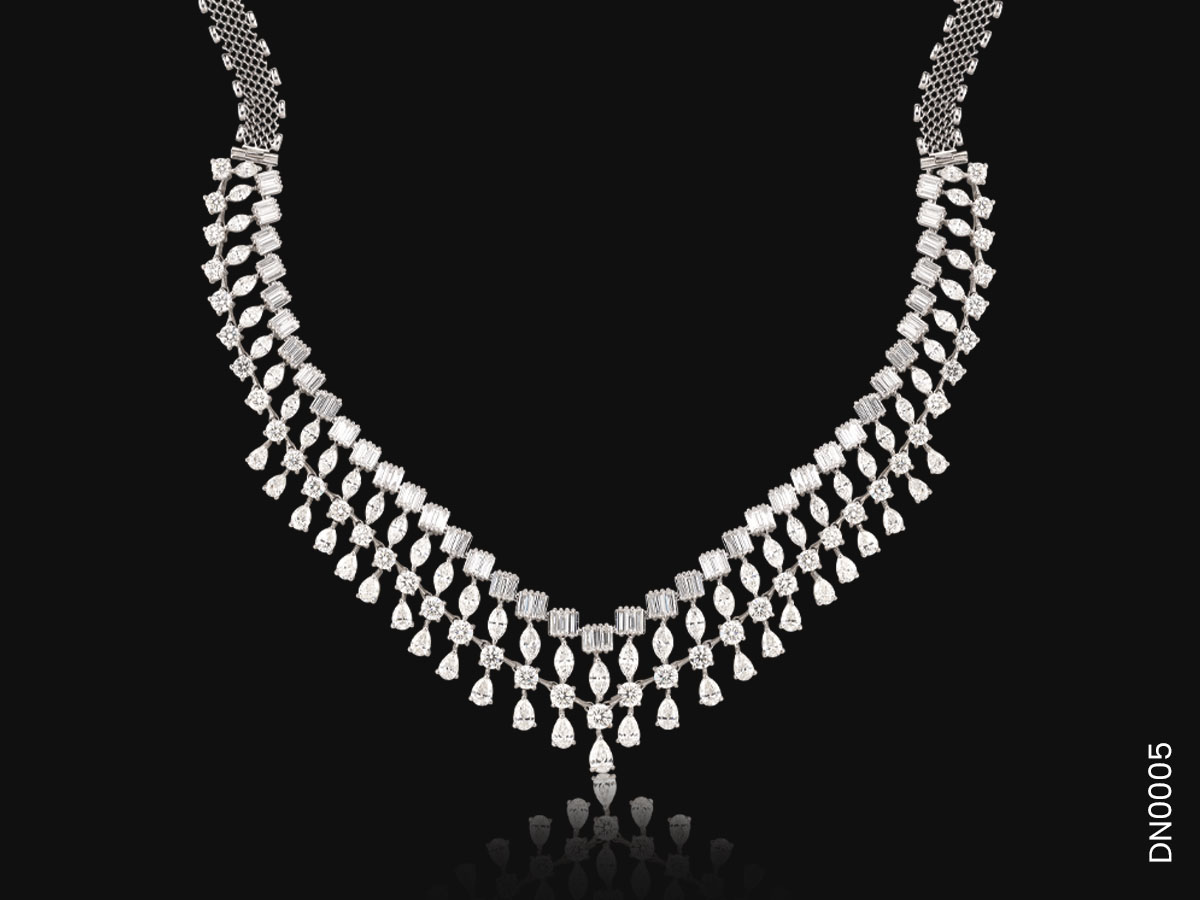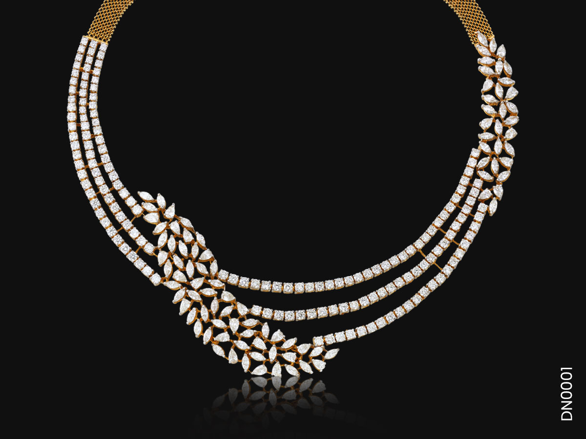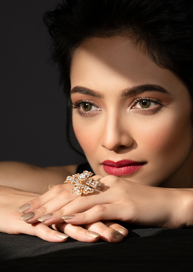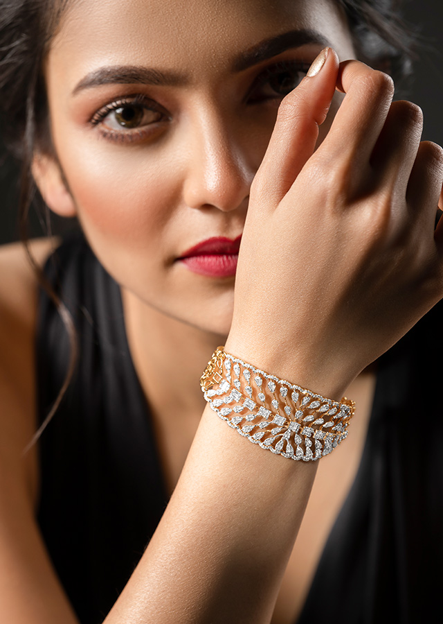 Capturing the strong spirit and delicate aura of her, we have weaved a collection that unequivocally mirrors her character with natural diamonds cascading over her neck.